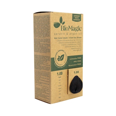 بيوماجيك كريم صباغة الشعر بالكيراتين وزيت الأرغان 1.00 أسود 60 ملل