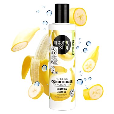 أورغانيك شوب بلسم عضوي لإعادة التعبئة للشعر العادي بخلاصة الموز والياسمين - أبيض 280 ملل
