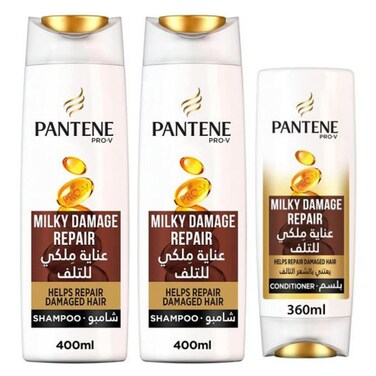 بانتين شامبو ميلكي لإصلاح التلف 400 ملل حزمة من 2 مع بلسم 360 ملل