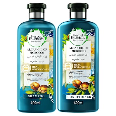 هيربال إيسنسز بيو: رينيو شامبو + بلسم بزيت الأرجان المغربي لإصلاح الشعر وتجديده 400 مل + 400 مل