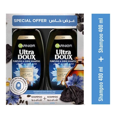 غارنيه ألترا دوكس شامبو بالفحم الأسود وزيت بذور حبة البركة للتنقية واللمعان 400 ملل حزمة من 2