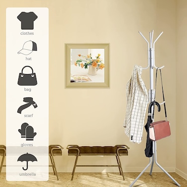 Multipurpose ➤ Our freestanding coat hanger has 3 strong and sturdy mental prong legs, which make it can support multiple thick cloth items, it will not shake or tip over. 12 hooks allow you to hang several clothing items such as coats, jackets, ties and cardigans along with accessories like handbags, hats, laptop bags, scarves and umbrellas.