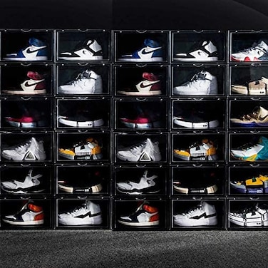 صندوق تخزين للأحذية ، مفتوح من الجانب بجودة عالية ومنظم تخزين للأحذية - حجم يصل إلى UK 46 (حجم كبير) ، مجموعة مكونة من 6 علب (اسود)