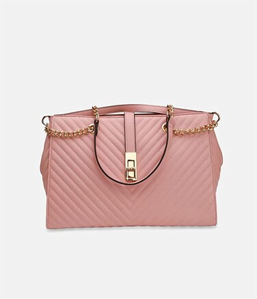 AMICA Shoulder Leather Tote Bag for Women With Metal Chain Strap - Pink