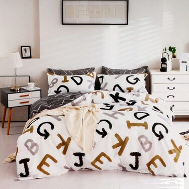 رزلان UAE- طقم غطاء لحاف بتصميم الأبجدية الجميلة لسرير مفرد أو توأم مع شرشف مثبت (3 قطع)