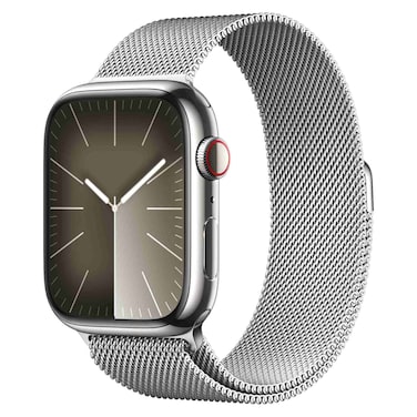 ساعة أبل إصدار 9 LTE مقاس 41 ملم بهيكل من الستانلس ستيل - فضي مع سوار ميلانو - فضي