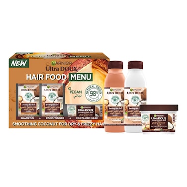 غارنييه ألترا دو كس غذاء للشعر شامبو بجوز الهند المنعم مع بلسم وقناع 3 في 1 3 قطع -أبيض-