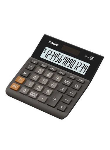 ألة حاسبة كهربائية مكونة من 14 خانة من كاسيو باللون الرمادي