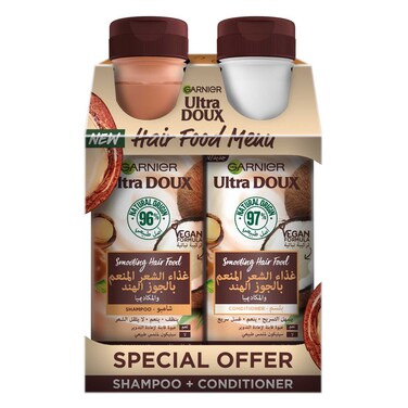 غارنيه ألترا دوكس شامبو وبلسم لتنعيم الشعر بزيت جوز الهند _وردي_ 350 ملل و 350 ملل