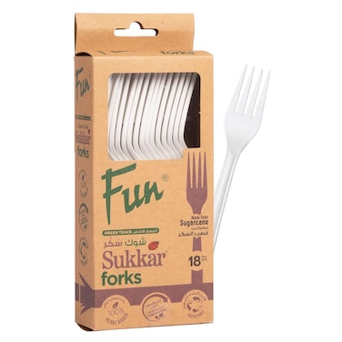 فان غرين تراك شوك مصنوعة من لب قصب السكر بيضاء 18 قطعة عبارة عن مجموعة من 18 شوكة بلاستيكية بيضاء مثالية للنزهات الحفلات والتجمعات الأخرى.