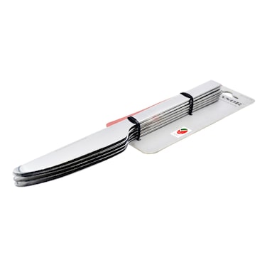 مصنوعة من الفولاذ المقاوم للصدأ عالي الجودة، هذه السكاكين متينة وتدوم طويلاً. يضيف التصميم الفضي الأنيق لمسة من الأناقة إلى أي إعداد طاولة.