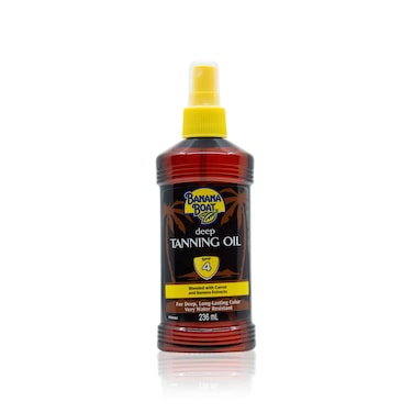 - يمنحك زيت التسمير الداكن من بانانا بوت رذاذ SPF 4 اللون الداكن العميق الذي ترغب فيه مع حماية خفيفة