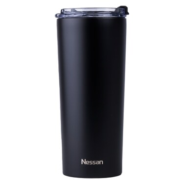كوب نيسان مزدوج الجدار المصنوع من الفولاذ المقاوم للصدأ باللون الأسود هو الرفيق المثالي للسفر للحفاظ على مشروباتك ساخنة أو باردة لساعات. يأتي بسعة 600 ملل، لذا يمكنك الاستمتاع بالكثير من مشروباتك المفضلة أثناء التنقل.