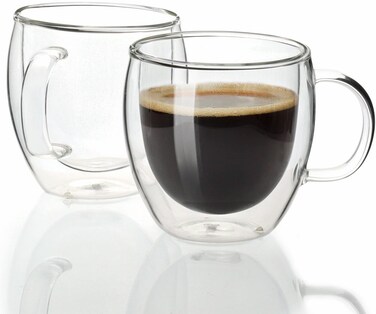 لاش أكواب قهوة معزولة بجدار مزدوج مع مقبض، مثالية للإستخدام اليومي لماكينة الإسبريسو وماكينة صنع القهوة، 2 كوب، 250 مل