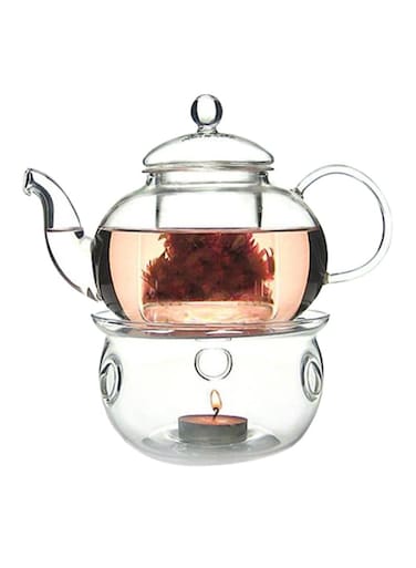 ابريق شاي زجاجي سعة 600 مل مع مجموعة موقد، شفاف 30x30x30 سم