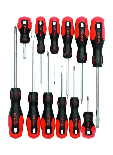 طقم مفكات من 12 قطعة أسود/أحمر/فضي