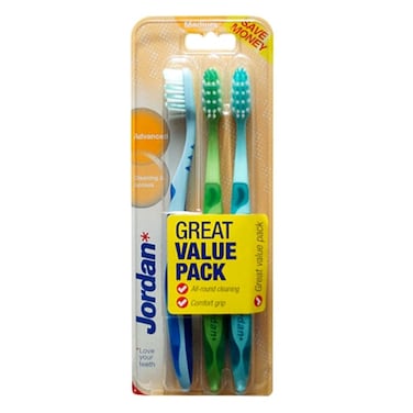 جوردان فرشاة أسنان للتنظيف المتقدم، متعددة الألوان، 3 قطع