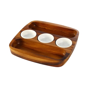 تتميز صينية التقديم هذه بتصميم ذو وجهين مما يسمح لك بفصل رقائق البطاطس والصلصة بسهولة للحصول على عرض نظيف ومنظم يضيف اللون البني لمسة من الأناقة إلى طاولتك مما يجعلها إضافة أنيقة لأي مناسبة