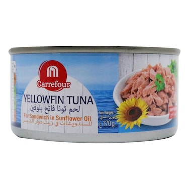 كارفور رقائق التونا الصفراء للساندويتش في زيت دوار الشمس 170 غرام