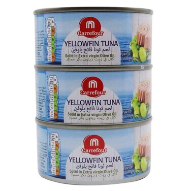 كارفور تونة الزعنفة الصفراء الصلبة في زيت زيتون بكر ممتاز 170 غرام حزمة من 3