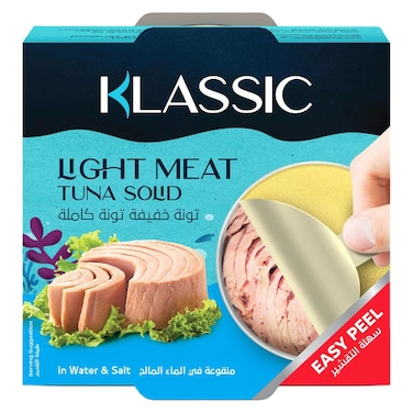 كلاسيك لحم تونة خفيفة كاملة في الماء والملح، 160 غرام
