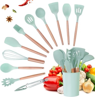 مجموعة ادوات طبخ للمطبخ من السيليكون غير اللاصق مع حامل , 12 قطعة