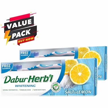 دابر معجون أسنان عشبي لتبييض الأسنان 150 غرام مع فرشاة أسنان 2 قطعة