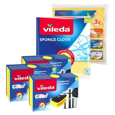 فيليدا مجموعة من 3 قطع من إسفنجة مع مجموعة من 6 قطع من إسفنجة كريستال غليتزي ومجموعة من 3 قطع من القماش متعدد الأغراض