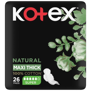 كوتكس ماكسي فوط صحية سميكة من القطن الطبيعي مع أجنحة، 26 فوطة