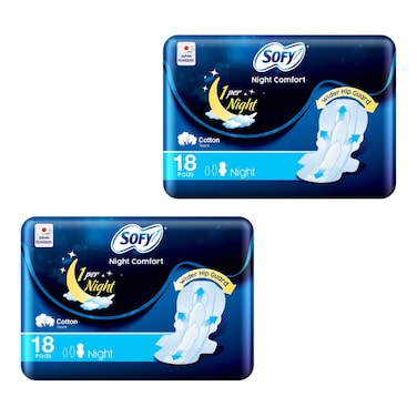 سوفي فوط بلمسة قطنية صحية للراحة الليلية 18 فوطة بيضاء حزمة من 2