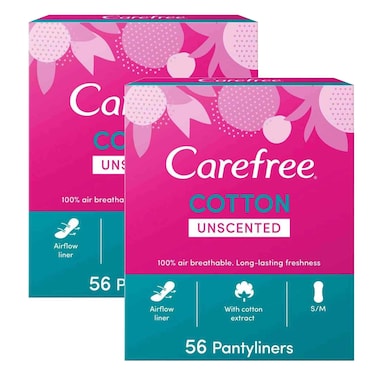 كيرفري فوط يومية قطنية غير معطرة، قابلة للتنفس، أبيض، 56 فوطة، حزمة من 2