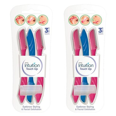 شيك إنتويشن تاتش أب لتصفيف الحواجب وتقشير الوجه، 3 شفرات حلاقة متعددة الألوان، حزمة من 2