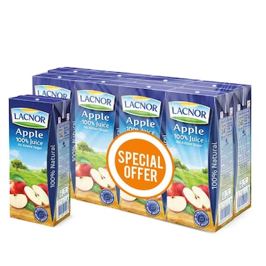 Lacnor No Added Sugar Apple Juice, 180ml Pack of 8