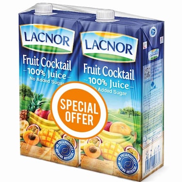 Lacnor No Sugar Added Fruit Cocktail Juice, 1L Pack of 2