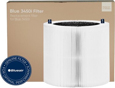 - <li>GENUINE BLUEAIR 3450i REPLACEMENT FILTER: Created by Blueair and specifically designed to be compatible with the Blueair 3450i air purifier to guarantee optimal performance and maximum filtration efficiency<li>SUPERIOR QUALITY HEPASILENT FILTER: The combination particle and carbon filter removes 99.97 percent of airborne particles, down to 0.1 microns in size due to Blueair’s unique HEPASilent filtration technology<li>EFFECTIVE 2-STAGE FILTRATION: The particle filter traps airborne particles including pollen, dust, mould, pet dander, viruses, bacteria, Activated coconut carbon absorbs light gases, including VOCs, chemicals, and odours from pets, smoke, and cooking<li>NATURALLY ANTIBACTERIAL: The naturally antibacterial polypropylene fibres in Blueair filters prevent bacteria and mould growth, so our filters never put bacteria and mould back into the air<li>UP TO 9 MONTH FILTER LIFE: To maintain optimum performance for your 3450i, we recommend changing your filter once every 6-9 months when used 24 hours a day, only use Blueair filters to keep your air purifier in the best working condition
