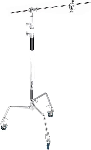 Coopic C Stand With 3 Pcs Wheel Stainless Steel 336Cm/10.8Ft Max. Height And 4 Feet Holding Arm Grip With Turtle Base For Studio Light Reflector