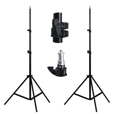- <p>Photography Light Stands is a perfect stand both for studio and on-site use<p>Constructed from aluminum alloy, giving it exceptional strength for heavy duty work<p>For simple storage and transport, the stand collapses easily and is very lightweight to carry.<p>The Studio tripod stand size comes with Folded height of 80.5cm and Maximum height of 200cm with universal 1/4" thread (spigot/stud) allow you to attach almost all light assemblies on it<p>Lightweight, durable materials, stable, robust construction<p>Specifications:<p>Minimum height: 80.5cm<p>Maximum height: 200cm<p>Weight: 1040 grams<p>Load capacity: 3kg<p>Attachment: Large spigot/stud with 1/4" thread<p>Package Includes:<p>2x Professional Light Stands for Photography Studio
