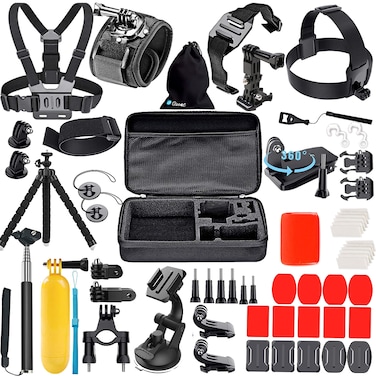 Ozone - Action Camera Accessories 56 in 1 Travel Kit For GoPro Hero 8 Black Hero 8 Max Hero 5 Hero 4 3 GoPro Session 2018 DJI Yi SJCAM Sports Action Camera (All in 1 Accessory for Action Camera)