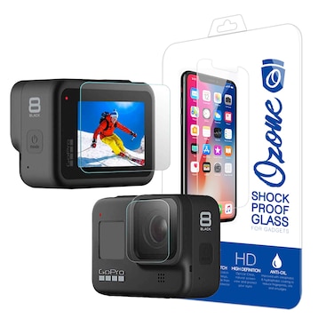 Ozone - GoPro Hero 8 Black Action Camera Shock Proof Tempered Glass Screen Protector with Lens Glass Protector