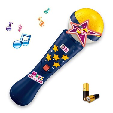 Kidwala Karaoke Blue Microphone Built In Music And Flashing Light Sing Along Mic With Battery Music Exploration Mic Third Gear Adjustment Mic Let's Sing Together Mic Toy For Girls