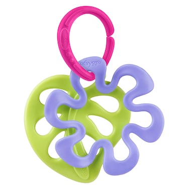 It features a garden-themed design with different textures and shapes to provide sensory stimulation and assist in teething. The bright and vibrant colours of this teether are visually appealing and capture the attention of your child.