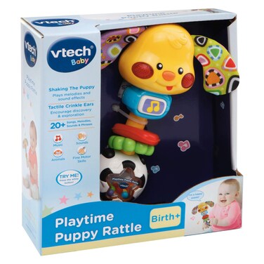 The VTech Baby Playtime Puppy Rattle Multicolour is a fun and interactive toy for babies.