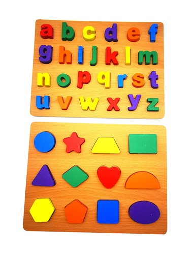 Wooden ABC Alphabet Shape Learning Puzzles Toys with Puzzle Board & Letter Blocks
