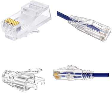 100-PACK Cat 6 RJ45 Connector Modular Plug with Strain Relief Boots, Transparent