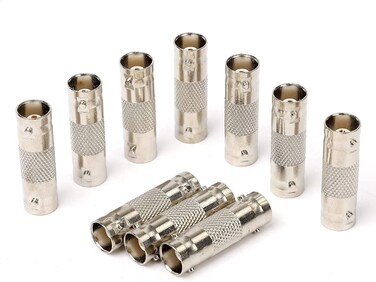 - High quality, the connectors are made of nickel plated copper to reduce signal leakage and prevent moisture penetration for maximum signal reliability and performance to ensure no loss to picture or sound quality. Precision machined, for maximum signal transfer and corrosion resistance BNC female to female plug connector, using the adapters, you could convert male BNC jack into a female BNC jack. Basic BNC barrels, used to install CCTV camera, join up or extend CCTV camera cables and video SDI/BNC cables, connect hf radios to antennas, etc. Package : 10 x BNC Female to BNC Female Connector.