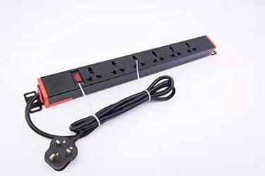 1U Rack-Mounted 6-unit 13A UK Plug PDU Power Strip Network Cabinet Rack Socket 2M Extension Cable Standard Outlet Switch Supply Power Distribution