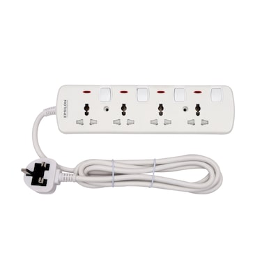 b"Tired of finding power sockets for your devices? We have got you covered. With its four individual switches, Epsilon offers you a versatile and highly functional 4-way extension socket that is a convenient power solution for all your electrical needs. It allows you to connect multiple electrical devices to a single outlet, making it ideal for travel or use in small spaces where only one power outlet is available. By providing four individual switches for each socket, you can easily control each device and turn it off without having to unplug it. This will prolong the life of your devices. It can be used to plug in devices like mobile phone chargers, laptops, speaker systems, side lamps, and many other electrical devices. With a 4-meter cord, it provides ample length for connecting multiple devices to a single power outlet. It can be used in your home, office, hostel, apartment, hotel, etc. With a rated current of 13 A and a rated power of 3250 W, this extension socket is capable of handling a variety of devices and appliances. Its 750-degree fireproof temperature feature ensures complete operational safety. In addition, the child safety shutter prevents children from accidentally inserting objects into the extension socket, making it the safest choice for households with children. Made from the highest quality material and packed with multiple utility features, this 4-way extension socket with individual switches is a practical solution for powering multiple devices at the same time and can even reduce space consumption by eliminating the need for multiple power outlets. Plus, it includes a 2-year manufacturer's warranty."
