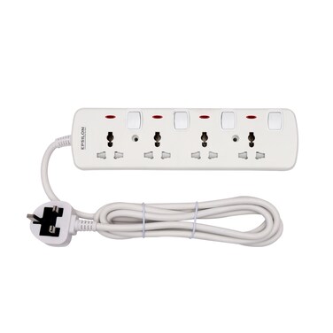 b"Have you ever had a hard time finding a power outlet for your device? We have got you covered. With its four individual switches, Epsilon offers you a versatile and highly functional 4-way extension socket that is a convenient power solution for all your electrical needs. It allows you to connect multiple electrical devices to a single outlet, making it ideal for travel or use in small spaces where only one power outlet is available. By providing four individual switches for each socket, you can easily control each device and turn it off without having to unplug it. This will prolong the life of your devices. It can be used to plug in devices like mobile phone chargers, laptops, speaker systems, side lamps, and many other electrical devices. With a 5-meter cord, it provides ample length for connecting multiple devices to a single power outlet. It can be used in your home, office, hostel, apartment, hotel, etc. With a rated current of 13 A and a rated power of 3250 W, this extension socket is capable of handling a variety of devices and appliances. Its 750-degree fireproof temperature feature ensures complete operational safety. In addition, the child safety shutter prevents children from accidentally inserting objects into the extension socket, making it the safest choice for households with children. A practical solution to powering multiple devices at once, this 4-way extension socket with individual switches is made from high-quality material and is packed with multiple utility features that make it the ideal choice. The absence of multiple power outlets can even reduce space consumption. Plus, it includes a 2-year manufacturer's warranty."
