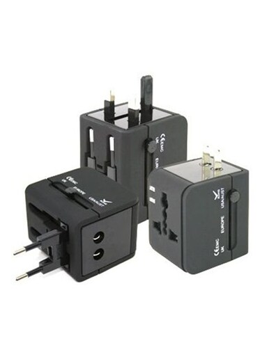 Generic Universal Travel Adapter Charger With 2 Port Black