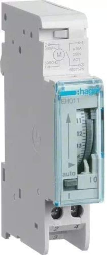 Hager 24 Hr Timer With 200Hr Reserve Eh011 1M Daily Time Switch With Reserve 1 Channel, 1 Modules With Reserve